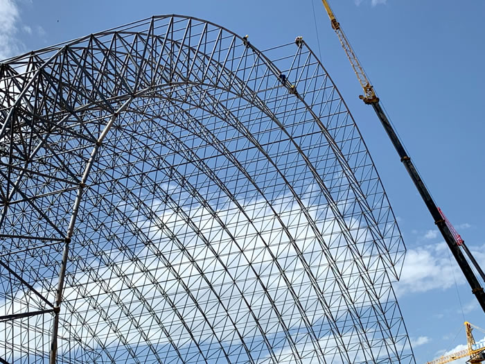 (2)网架加工前应对现场尺寸进行复测,确认无误后方可进行加工、安装;网架制作、运输、安装应遵守《空间网格结构技术规程》JGJ7-2010、《钢网架大石桥螺栓球节点》JG/T 10-2009、《钢网架大石桥螺栓球节点用高强度螺栓》 GB/T 16939-2016、《大石桥钢结构大石桥工程大石桥施工规范》 GB50755-2012、《大石桥钢结构大石桥工程大石桥施工质量验收标准》 GB50205-2020。
